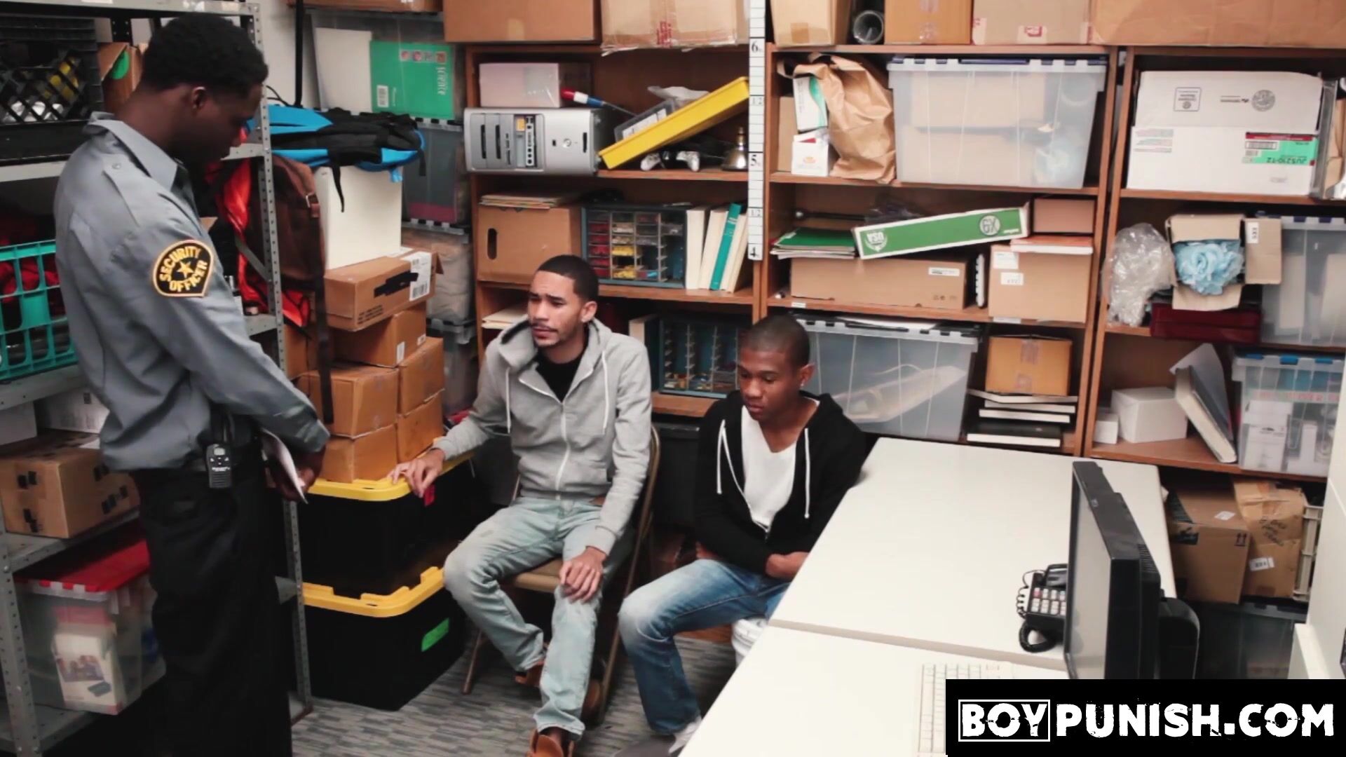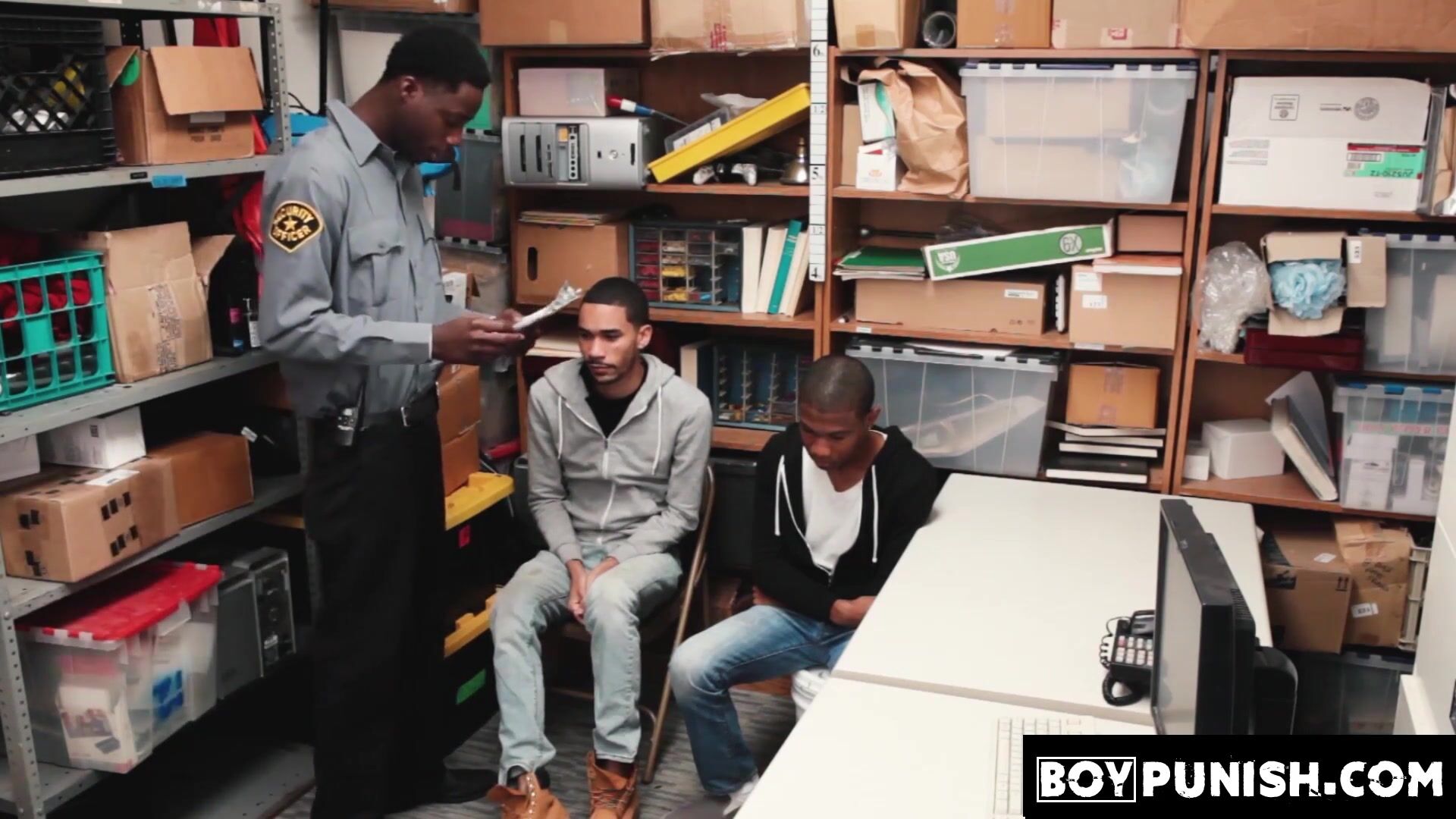 Boy oh boy are we in for a crazy and raw party when two young ebony guys get caught stealing by a horny officer with a huge black monster.