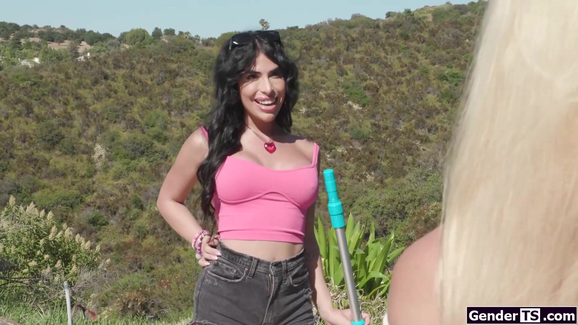Coed River Lynn catches busty tgirl poolbabe Avery Lusts eye when sunbathing in her bikini.The shemales dick pops out of her shorts and intrigues the babe.The latin trans licks pussy and gets her tranny dick deepthroated before she bangs the blonde