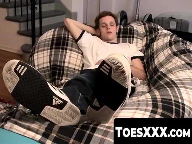 Jarrod takes his time, showing off his sneakers and then his dirty socks, sliding them off to show us his feet and those totally suckable toes.