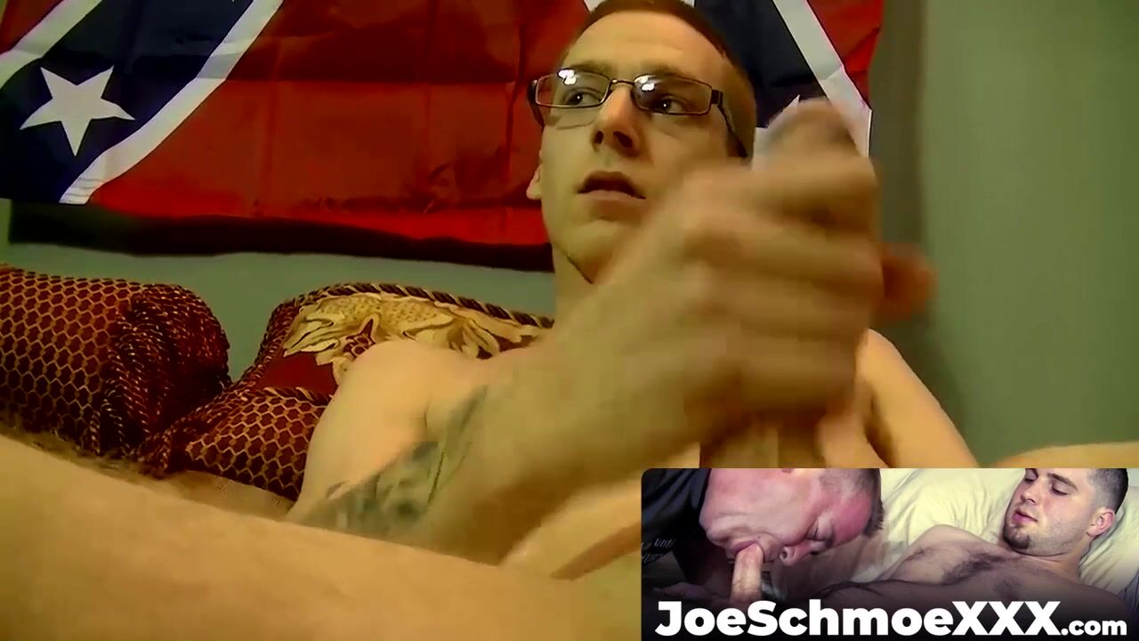 JoeSchmoeXXX.com - Twink jerks his cock and blasts a cumshot on dude's face