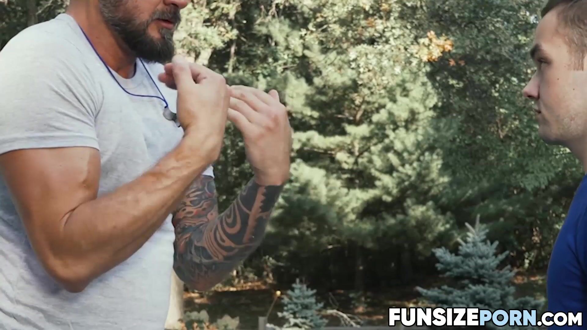 FunsizePorn.com - Hunk instructor Dallas Steele helps Marcus Rivers work out his big thick cock