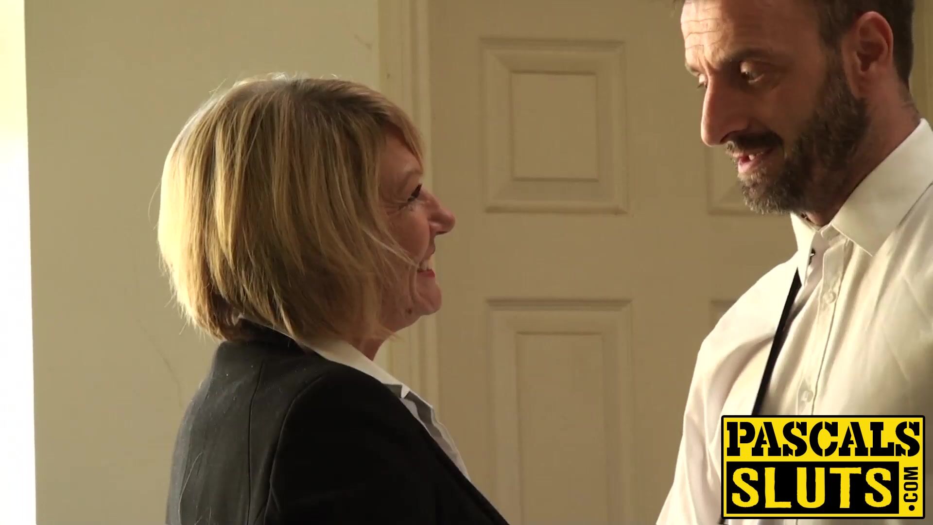 Blonde English MILF sucks hard cock while being a cute sub