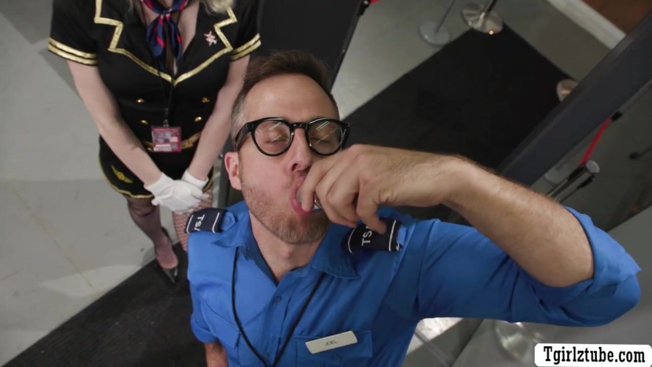 Shemale flight attendant analed by airport security