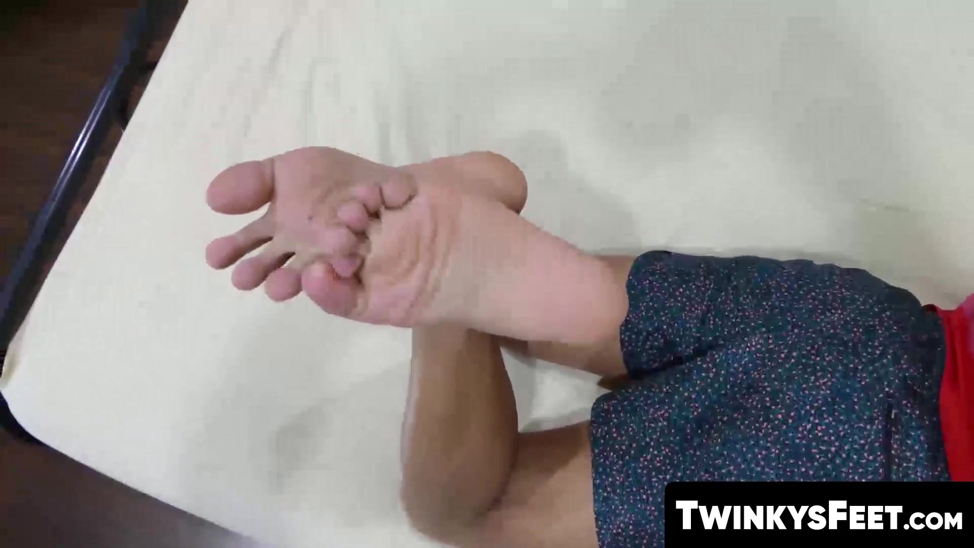 TwinkysFeet.com - Delicious twink shows off his sexy feet before jacking off his big hard cock