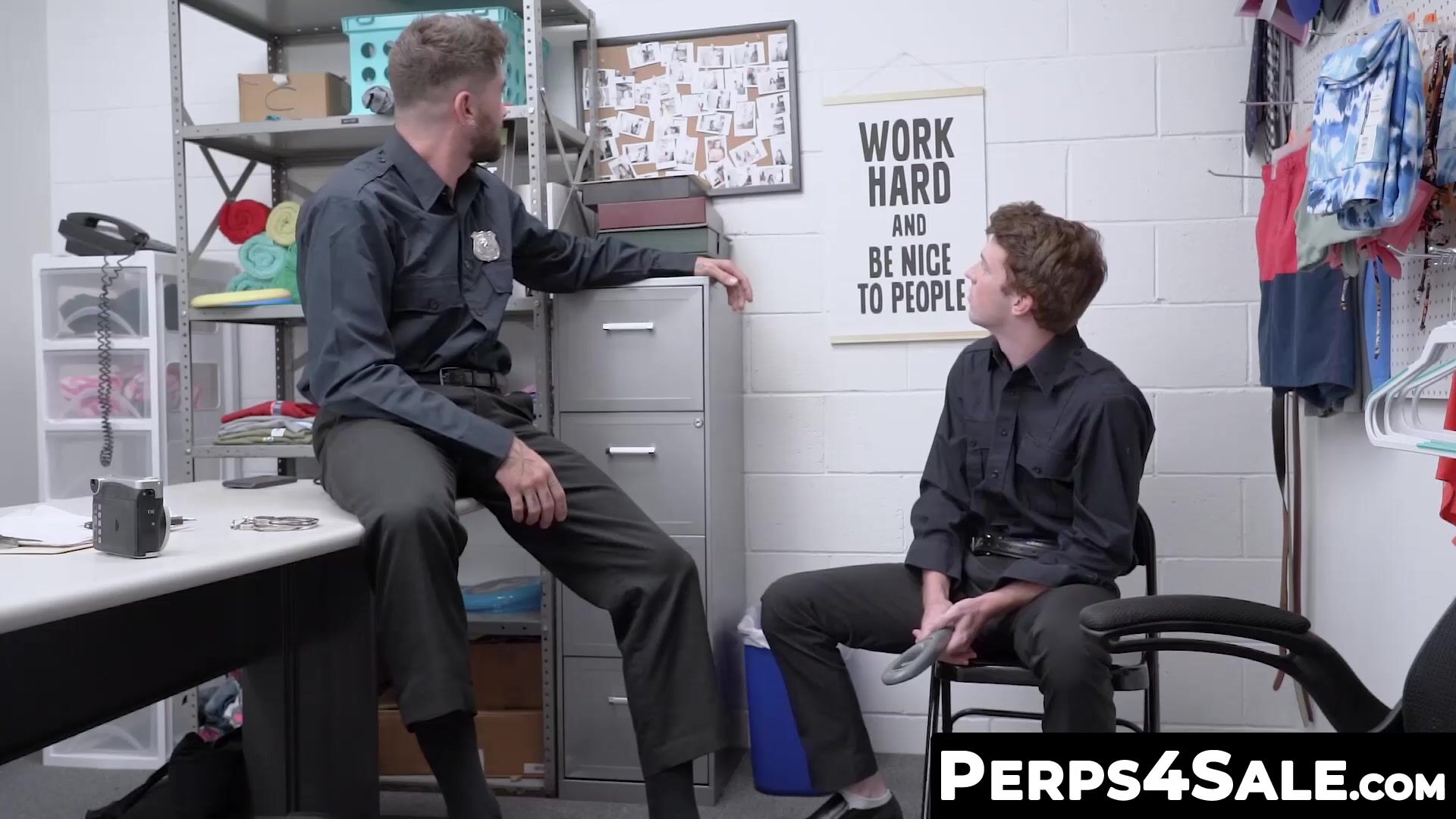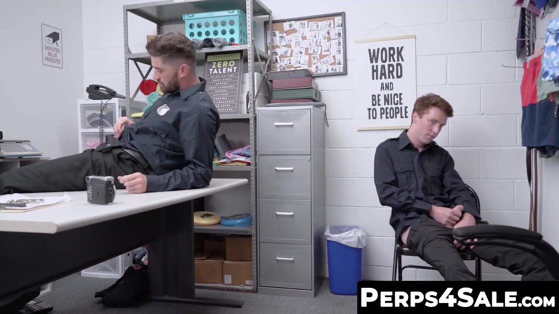 Twink perp caught and barebacked hard by a security officer