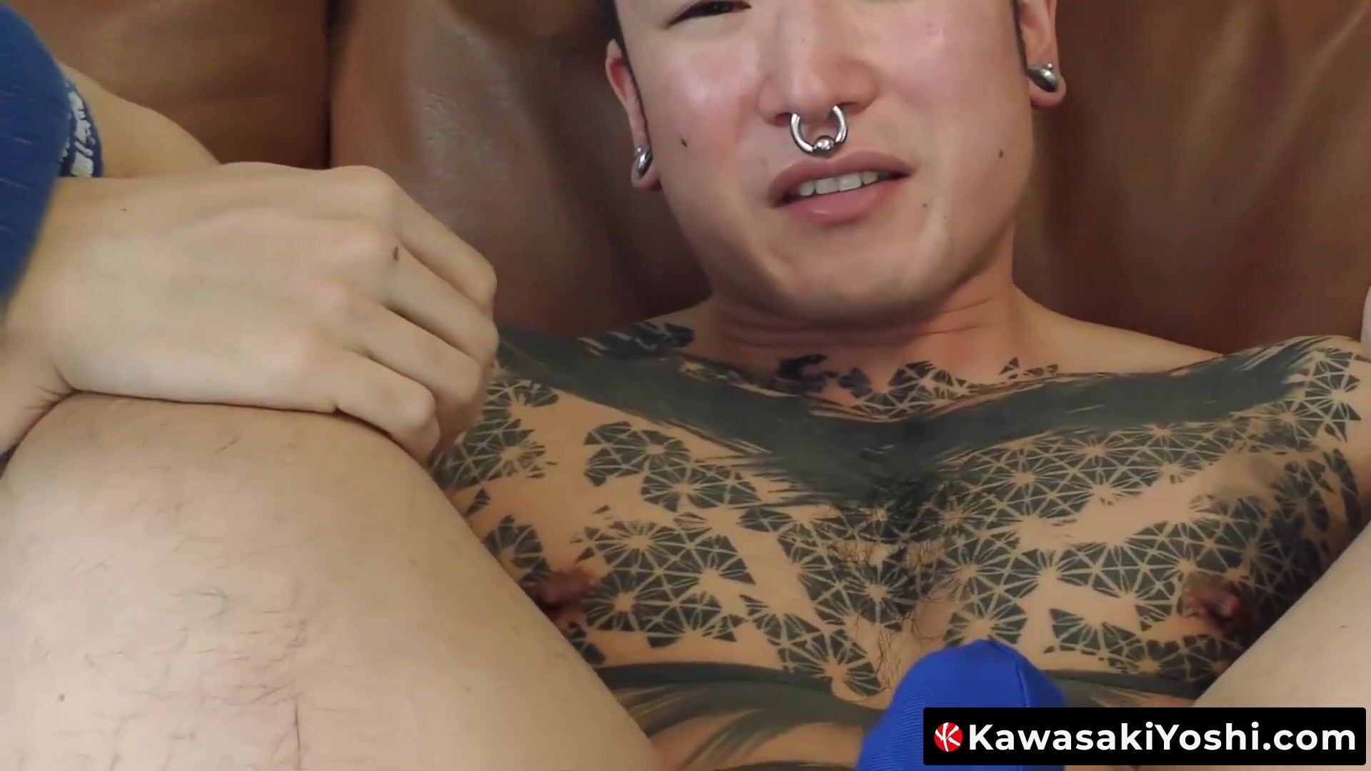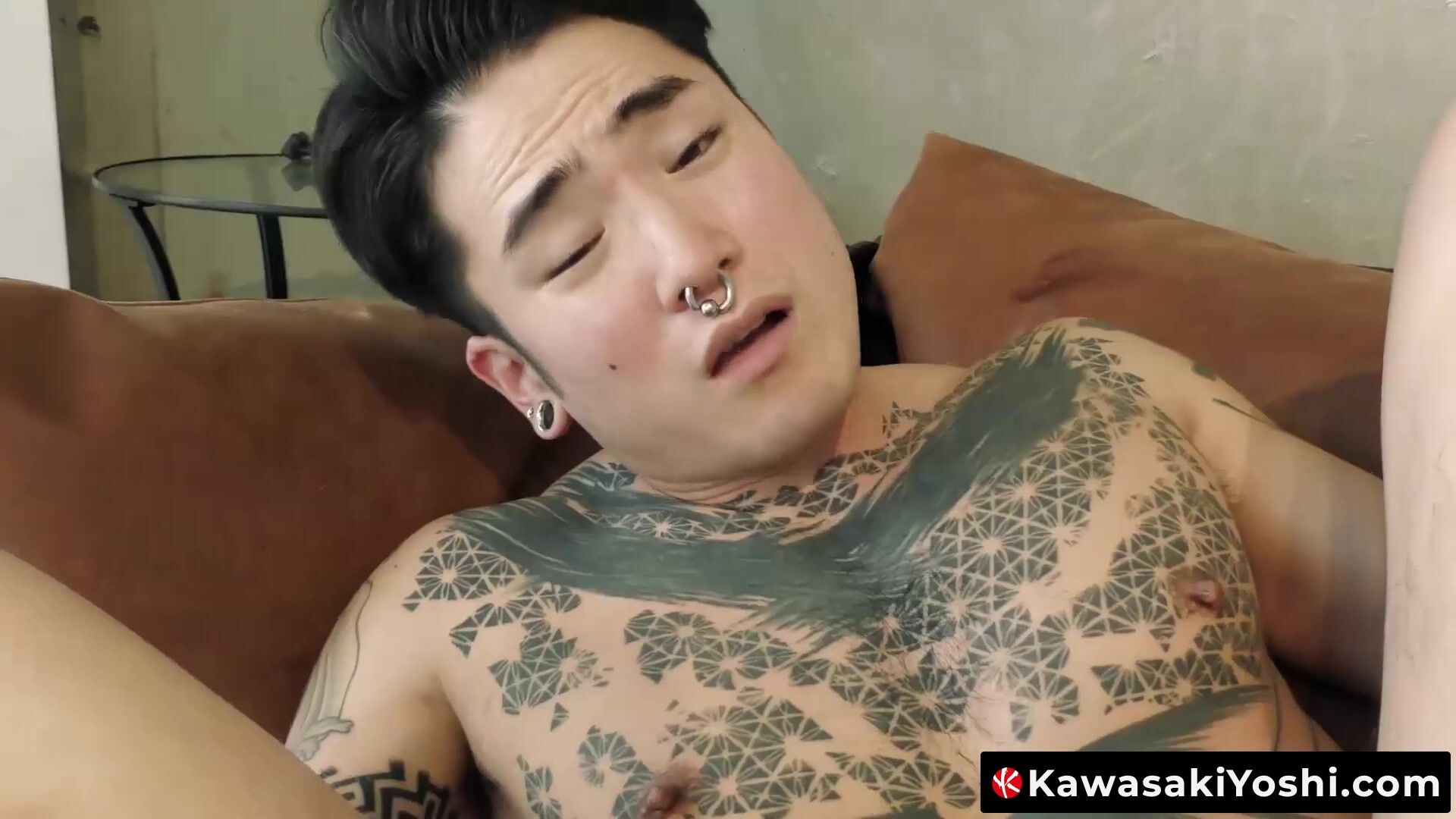 KawasakiYoshi.com - Naughty inked Asian Yoshi Kawasaki stuffs massive dildos in his gaping ass