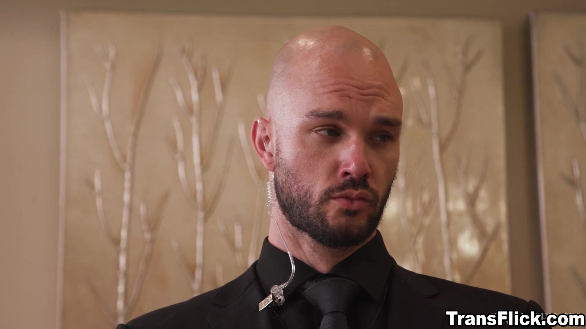 Dutiful bodyguard sex with two hot trans