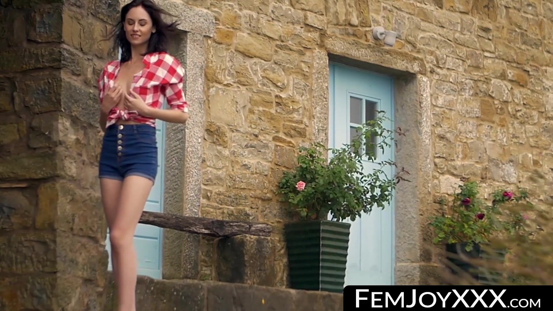 FemJoyXXX.com - Sabrina strips to tease herself outdoors in solo play