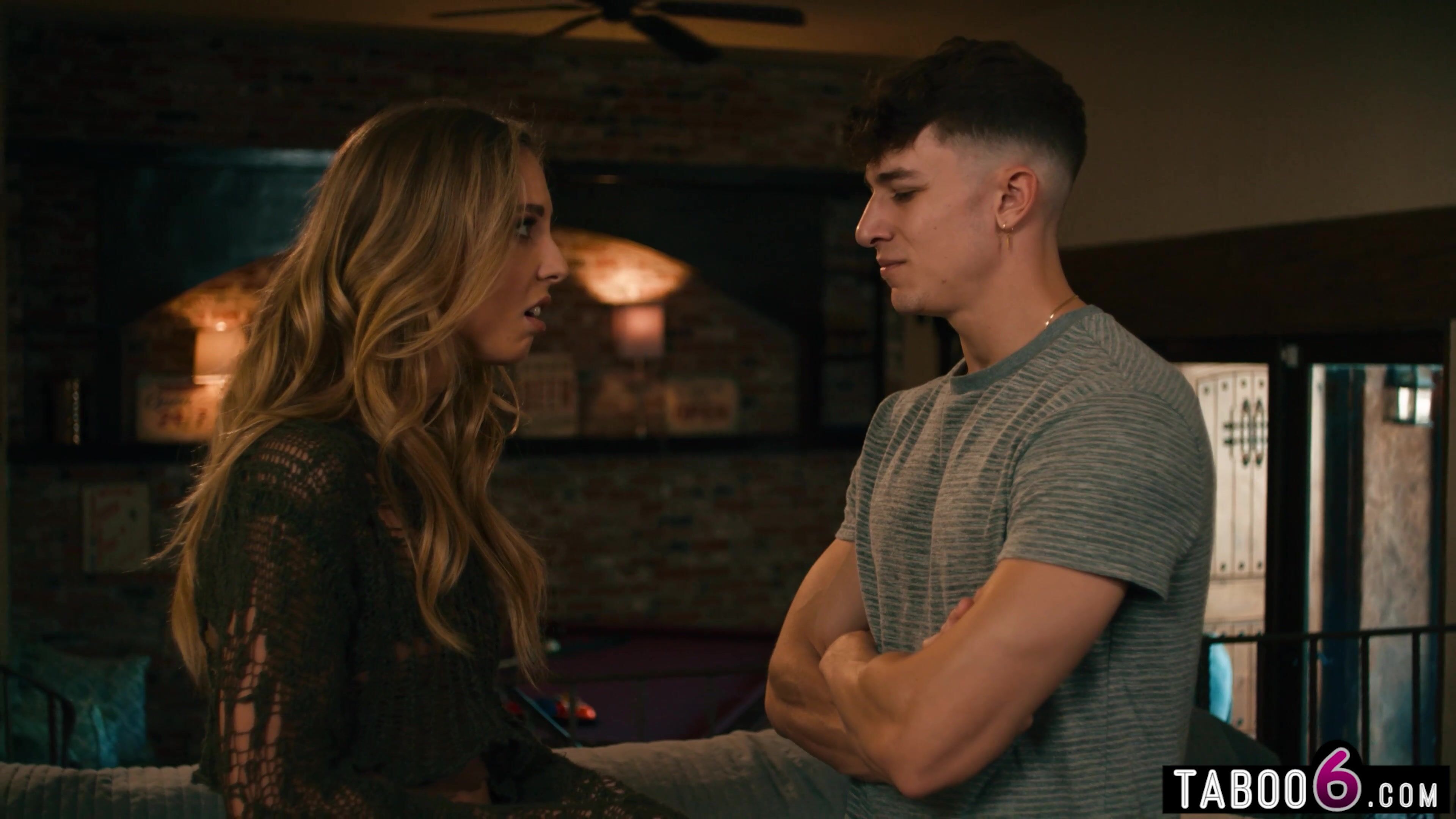 Cheating stepdad was no longer around but now the truth came out when her stepson visited his original stepdaughter and then this happened! Blackmailed into sex his stepdaughter has no choice but to suck and fuck the big cock stepson right then and there!