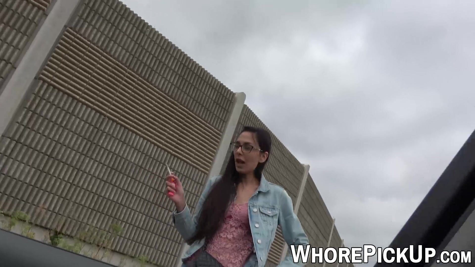 Skinny nerdy looking whore loves dick so much that she just jumps in the car and starts sucking a huge cock, doesn't even ask for money.