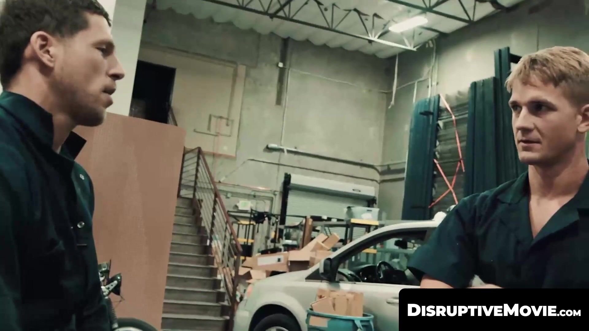 DisruptiveMovie.com - Mechanic Roman Todd bends twink Brandon Anderson over for a quick bareback