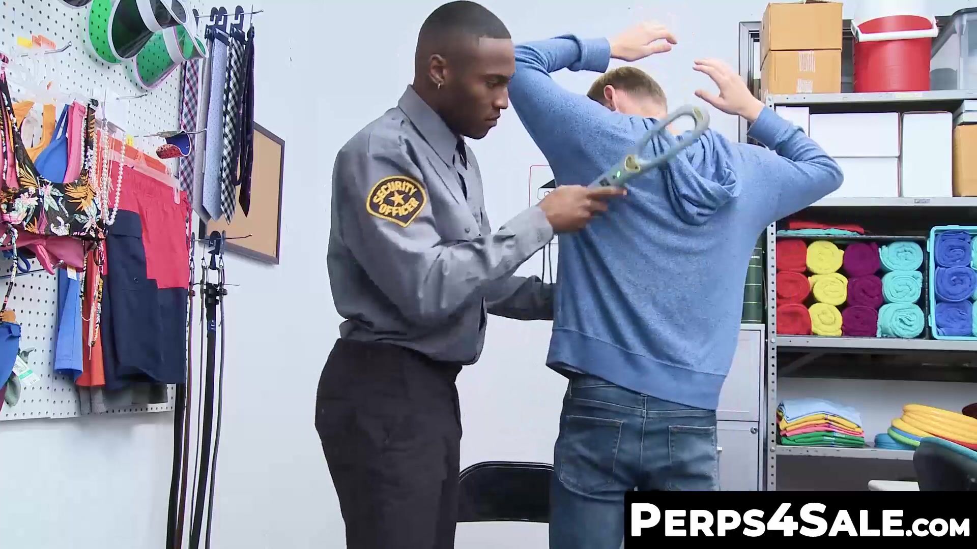 Hot Bearded Securities bareback fuck and cocksucking on duty