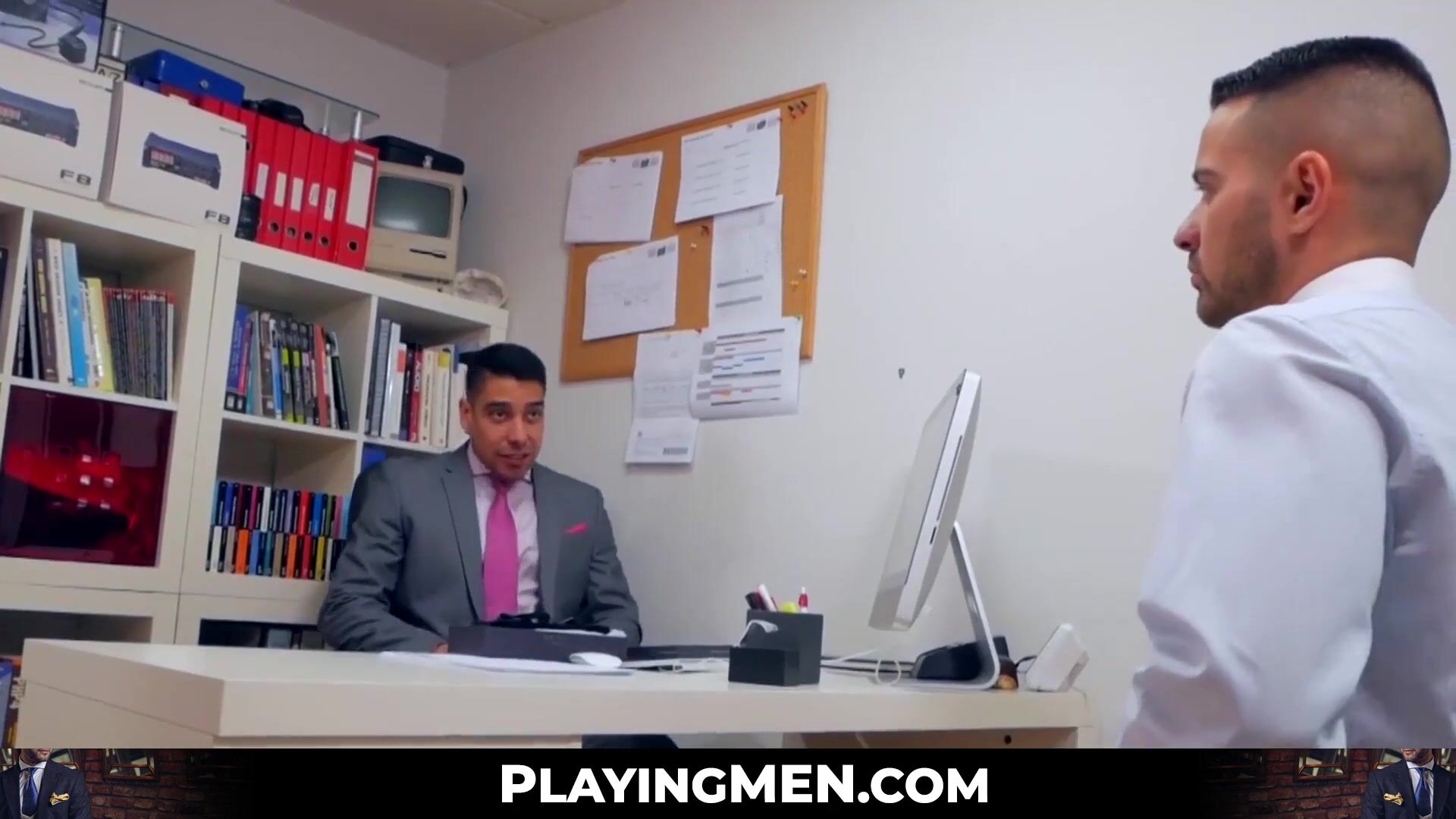 PlayingMen.com - Handsome office stud banging coworker during lunch break with intense desire