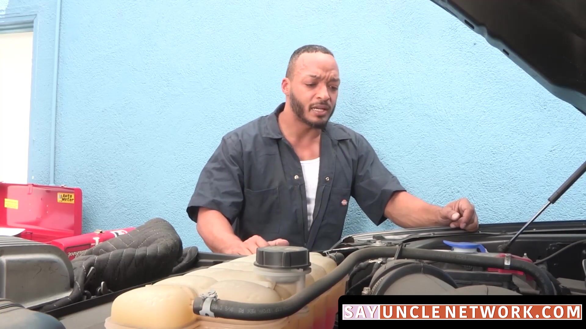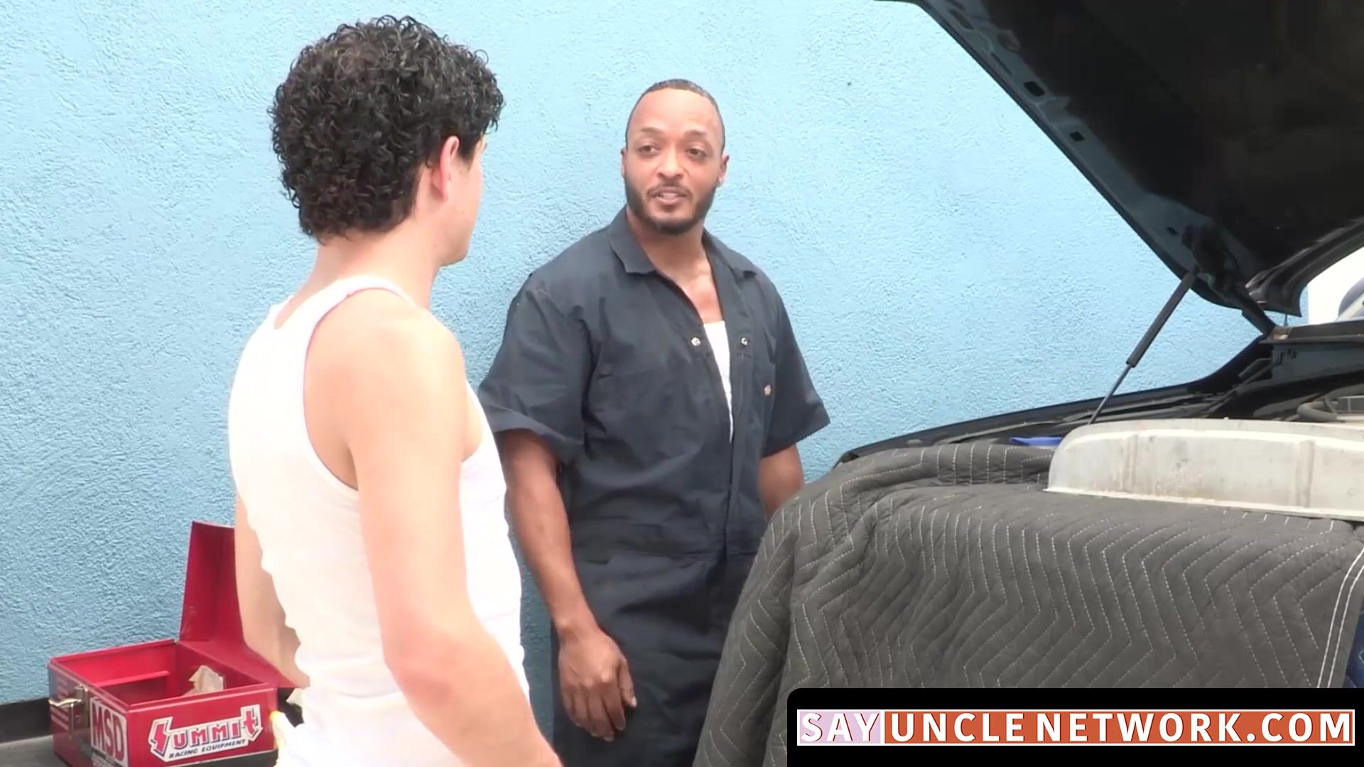Shy stepson is trying to learn how to fix cars with hot BBC stepdad but ends up learning how to take a stiff dick after taboo interracial pounding.