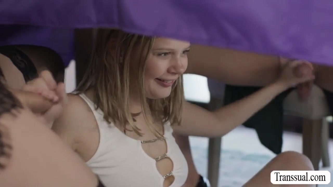 Coco Lovelock hide under the table and suck TS dick