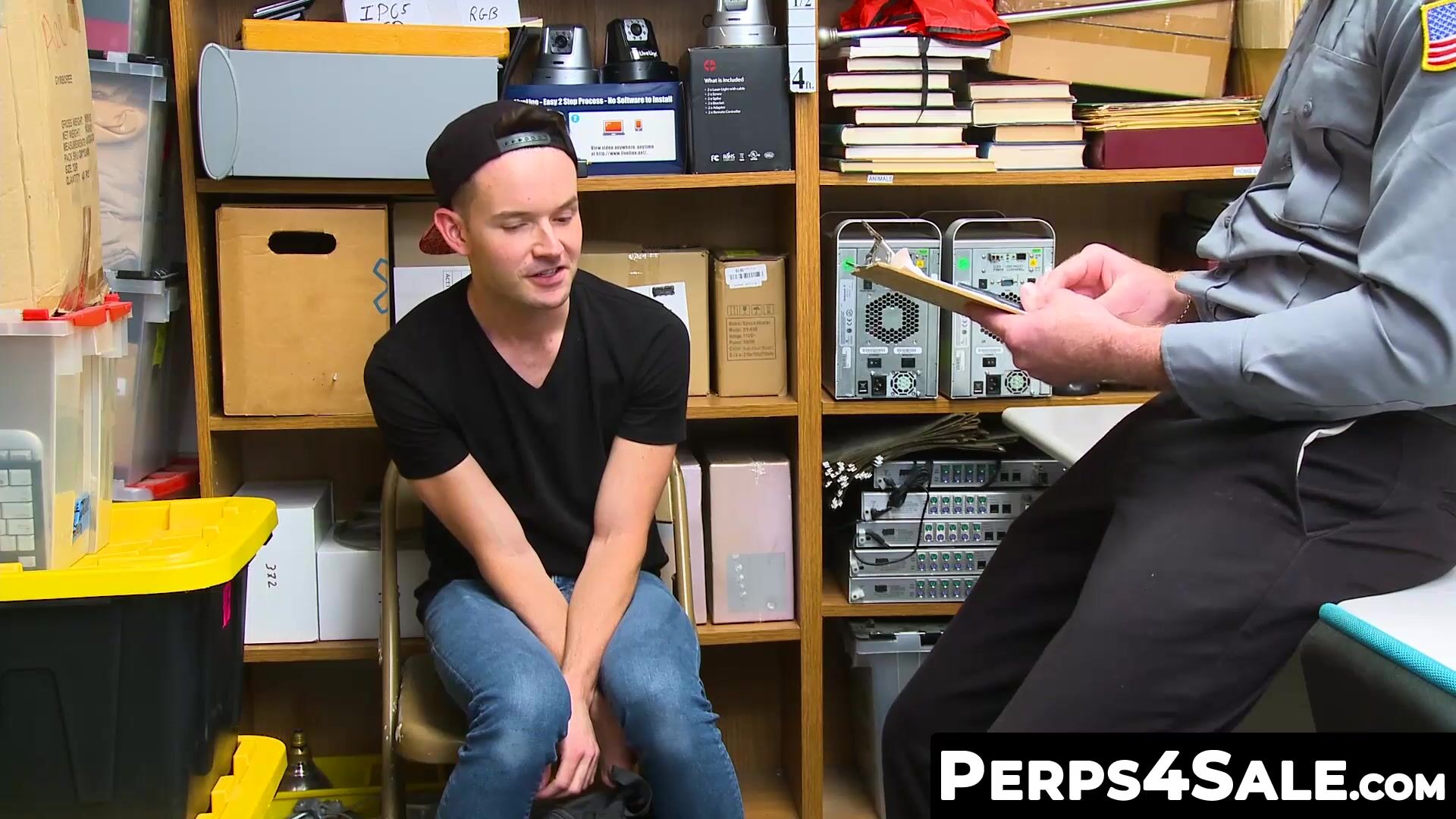Perps4Sale.com - Skinny thief twink offers hunk cop a sloppy blowjob