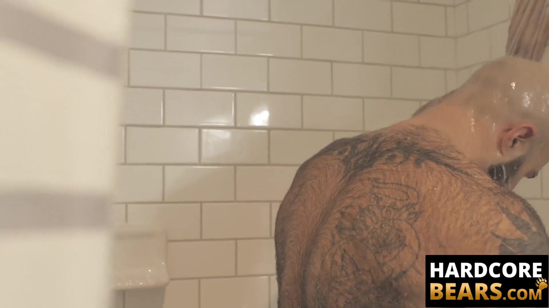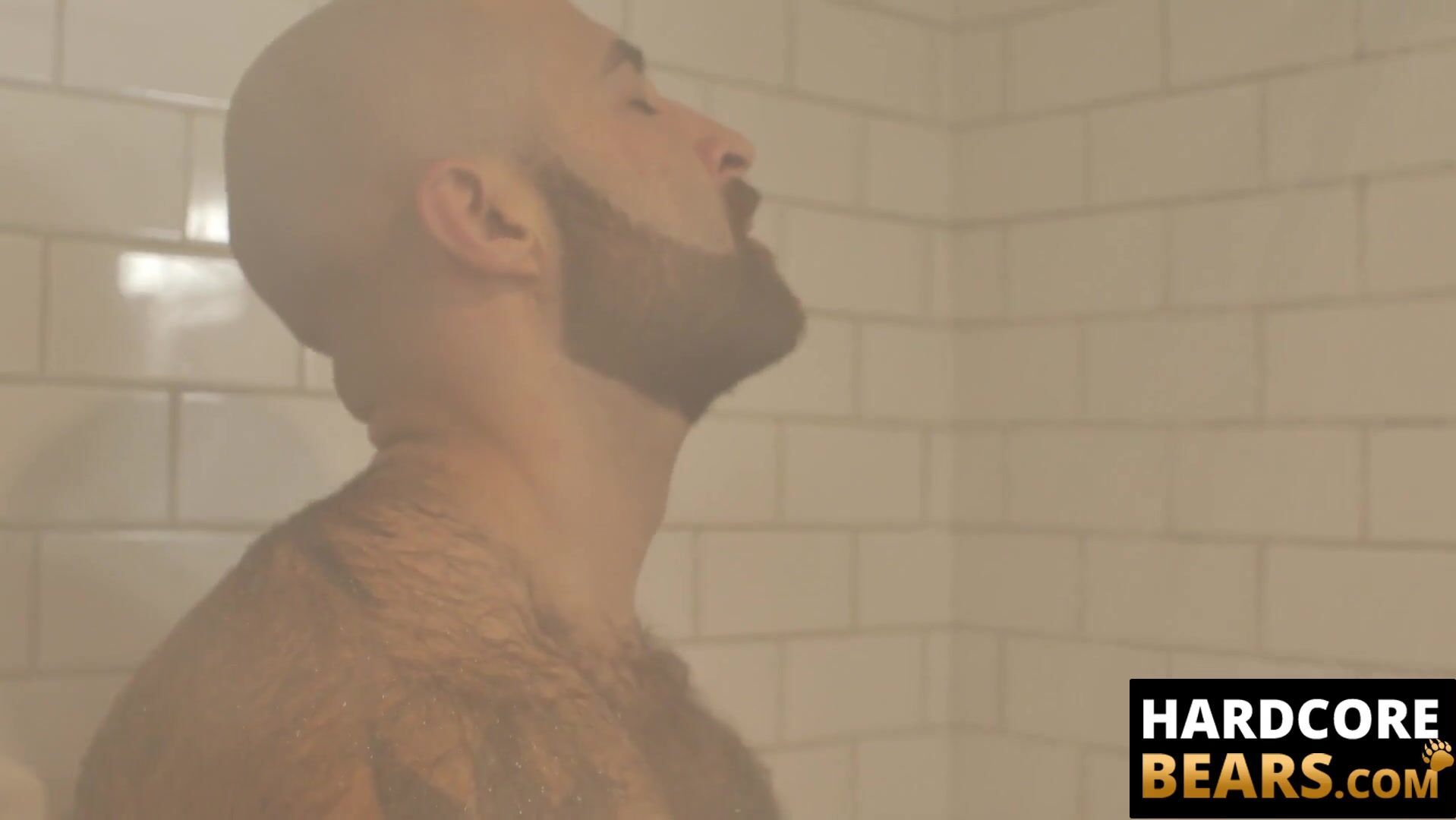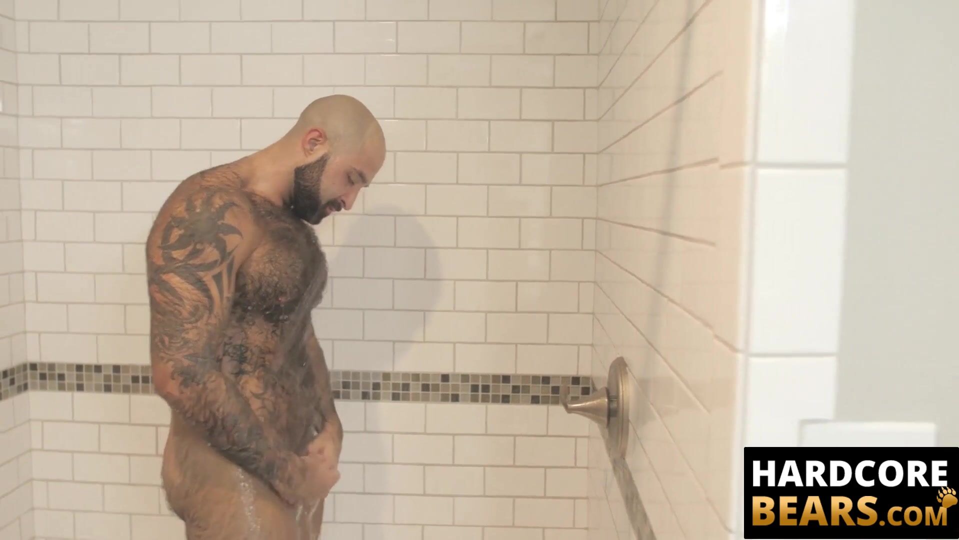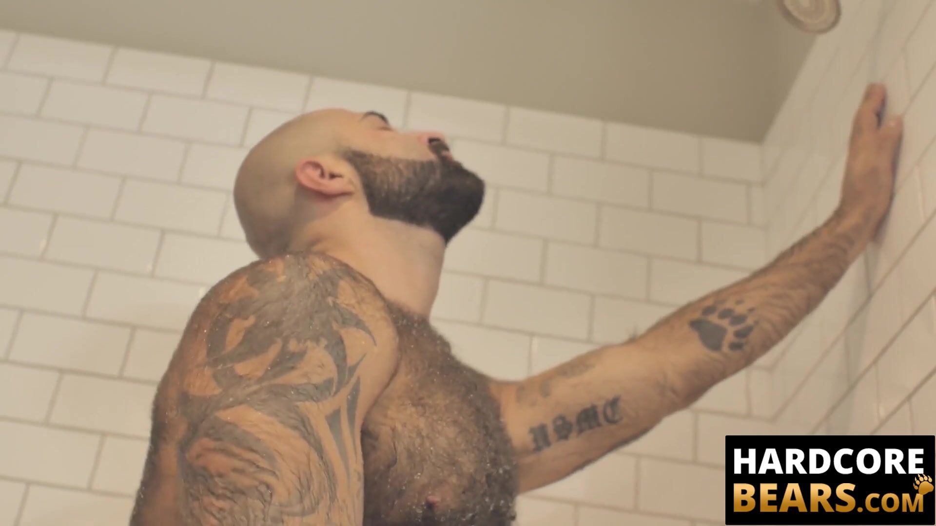 HardcoreBears.com - Bear washes his furry body and spanks his thick beefy ass