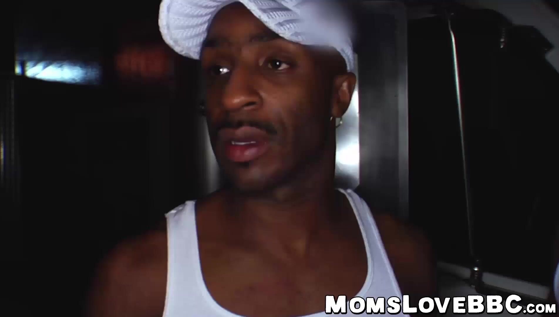 Busty MILF spitroasted by black hunks in the back of a truck