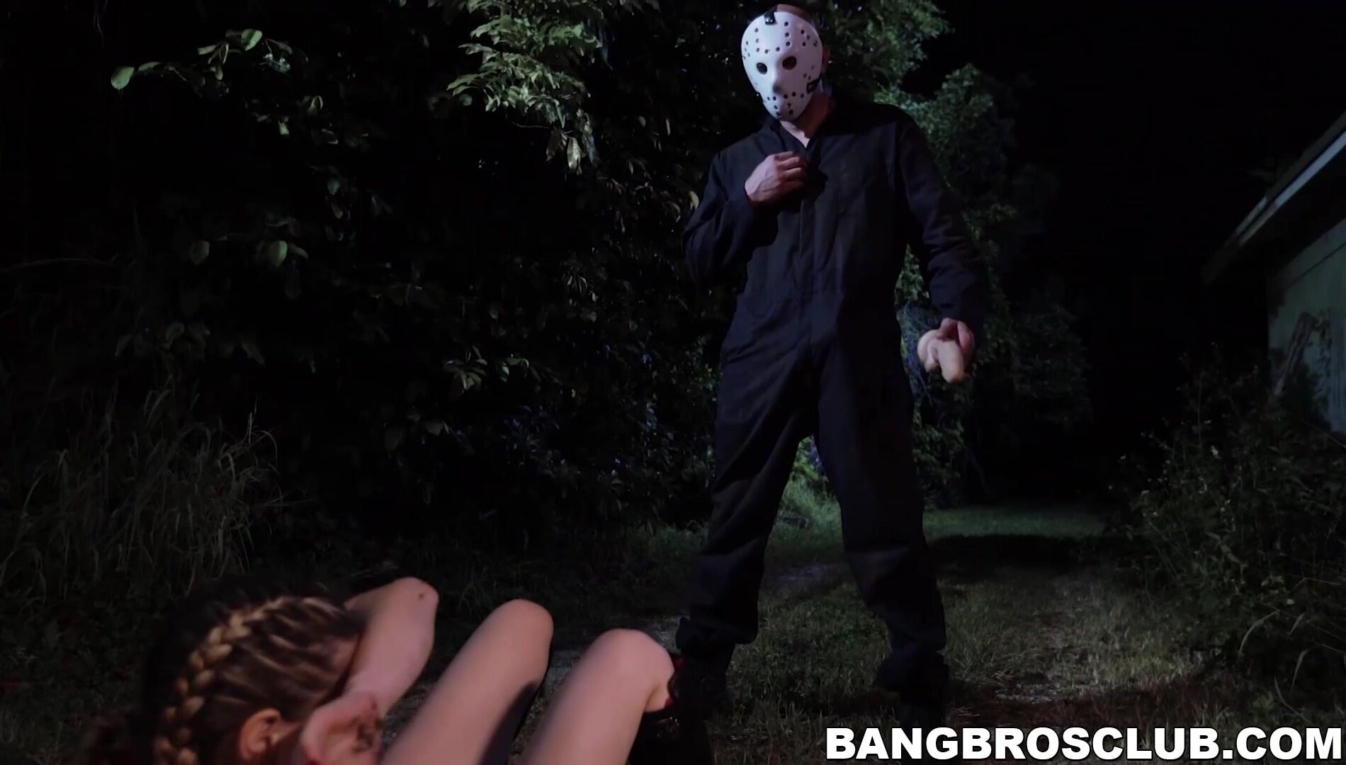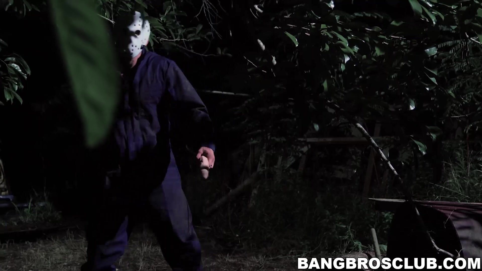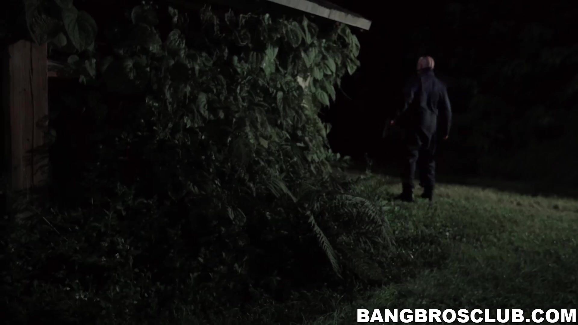 Big tits blonde babe Kara Lee running away from her stalker before sucking his big dick and doggystyle hard banging.
