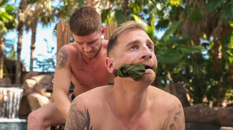 Nick works on butt licking Joshs thirsty slot while his groans
