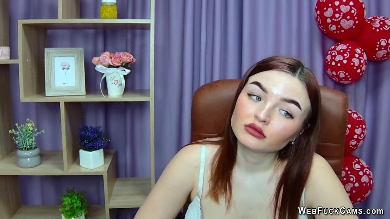 Redhead amateur babe NicolPot posing in bra in front of her webcam then strips and covers big boobs with hand closeup for her horny fans on solo live private show