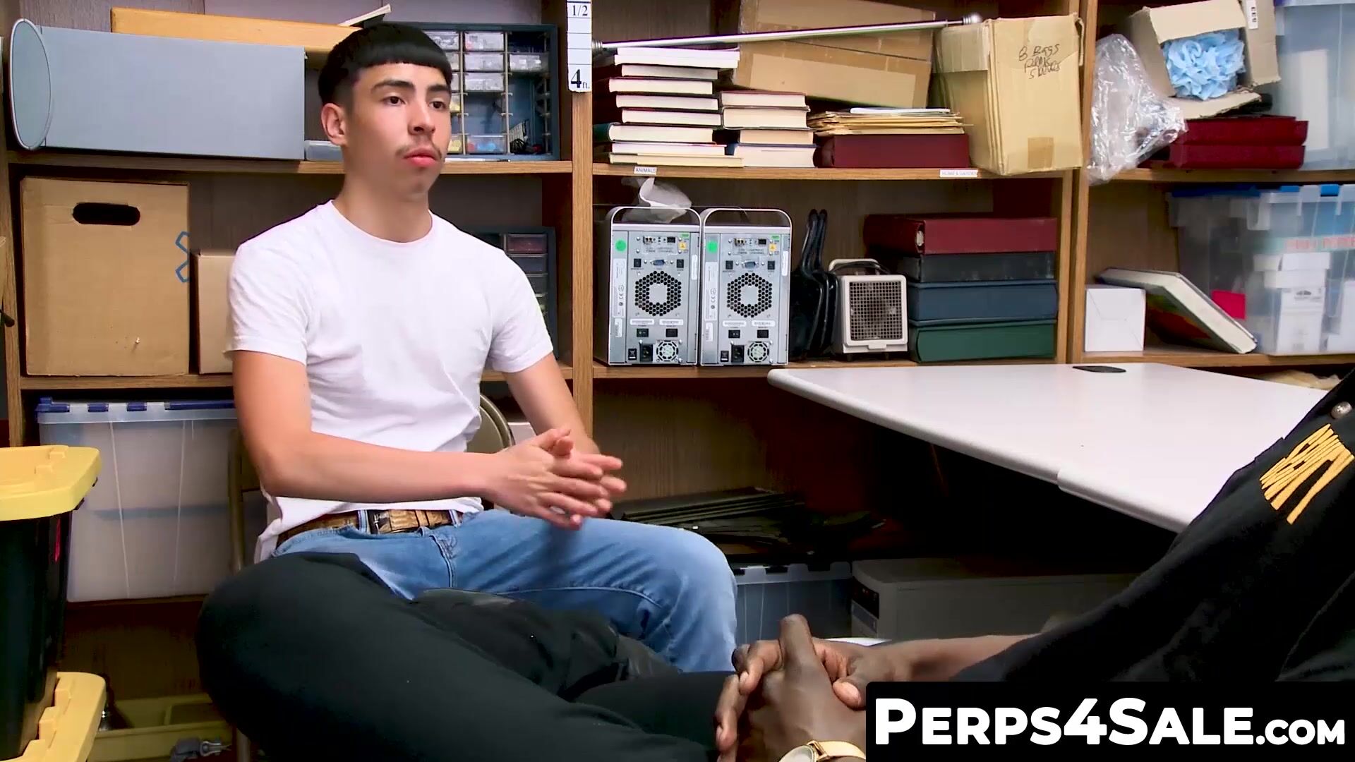 BoyPunish.com - Young thieving suspect detained and barebacked by a well suspended BIG BLACK COCK officer