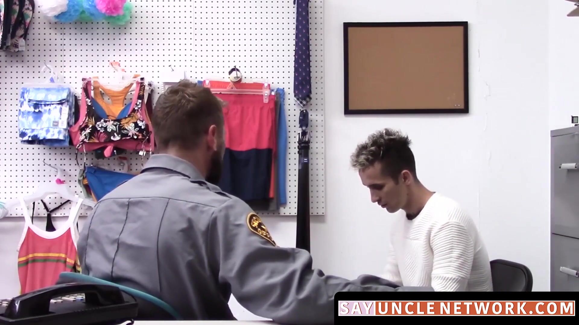SayUncleNetwork.com - Cute twink caught stealing takes deep bareback from police officer