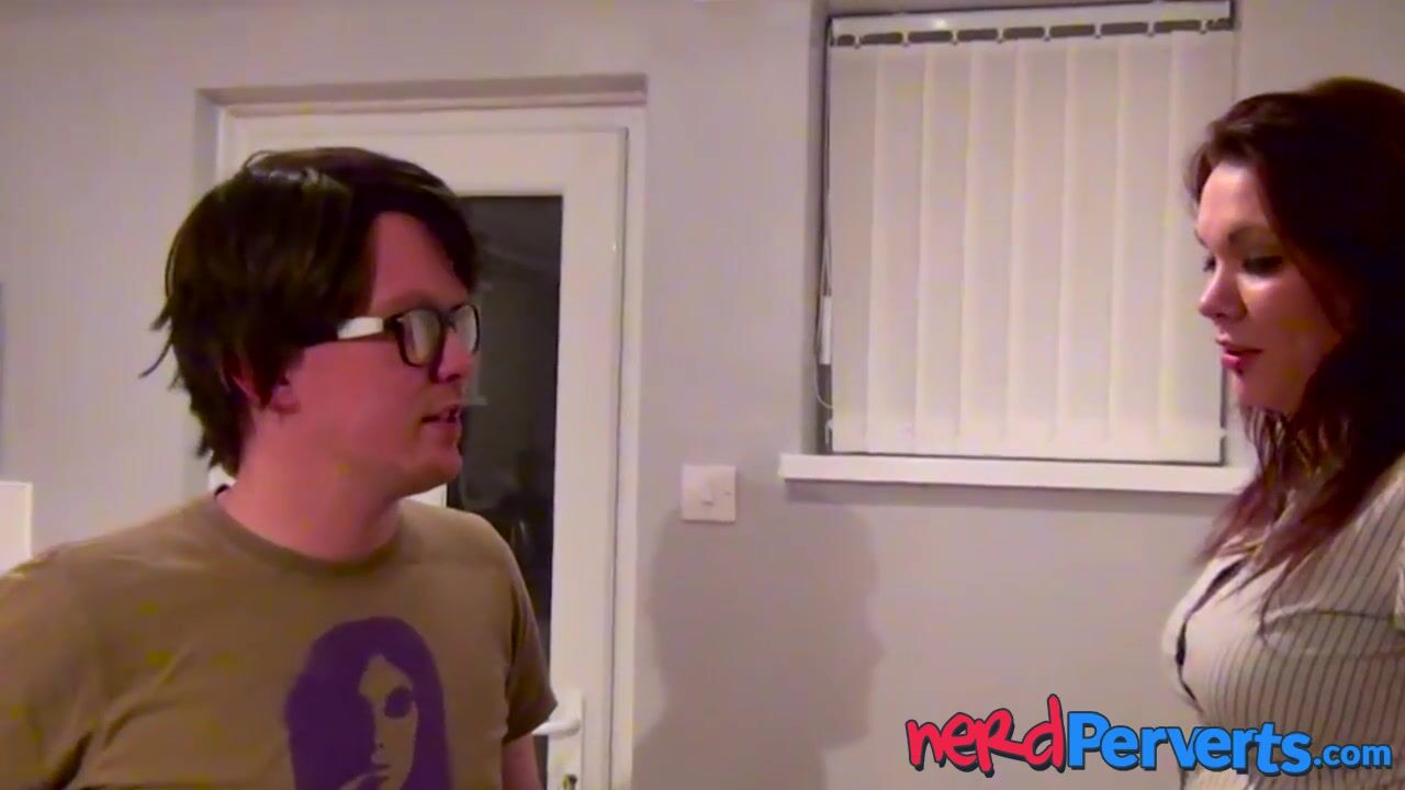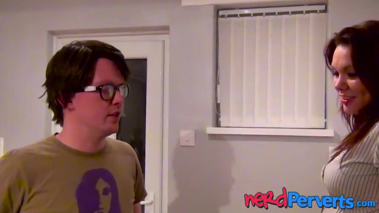 Pierced British brunette babe Bella Star deepthroats horny nerd with big thobbing dick POV.