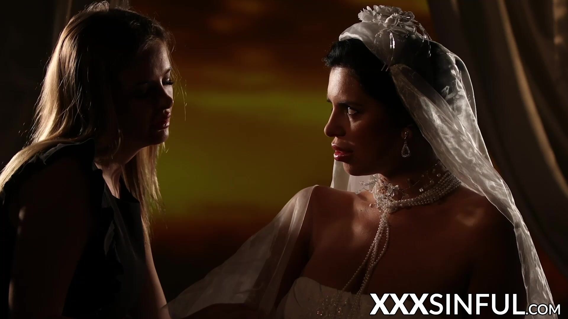 Beautiful lesbian couple moans while kissing and scissoring