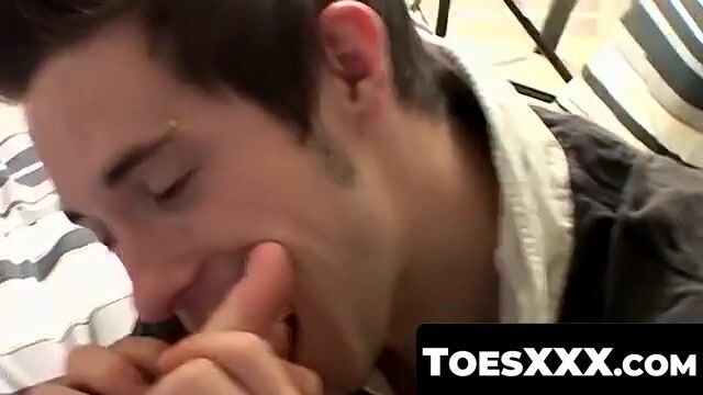 ToesXXX.com - Gay youngster's threeway feet play and cum blast