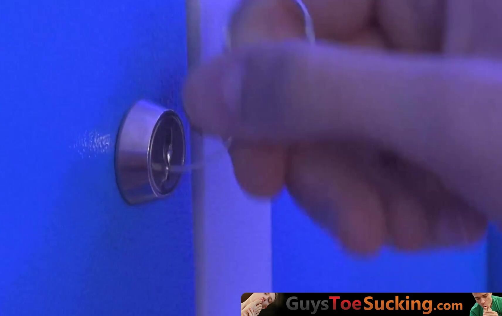 GuysToeSucking.com - Toe licking twink strokes his cock in the locker room