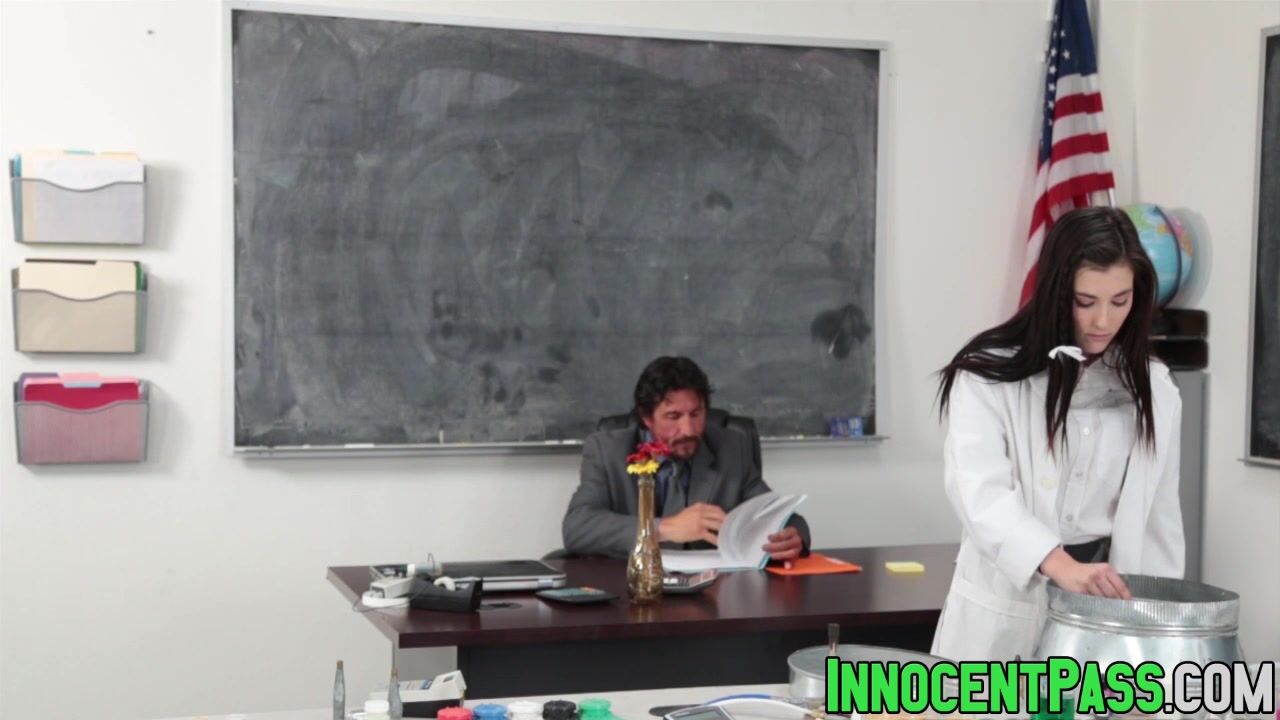 Jenna had to stay after school to fulfill some extra credit for her chemistry class. Mr. Gunn is not too thrilled.
