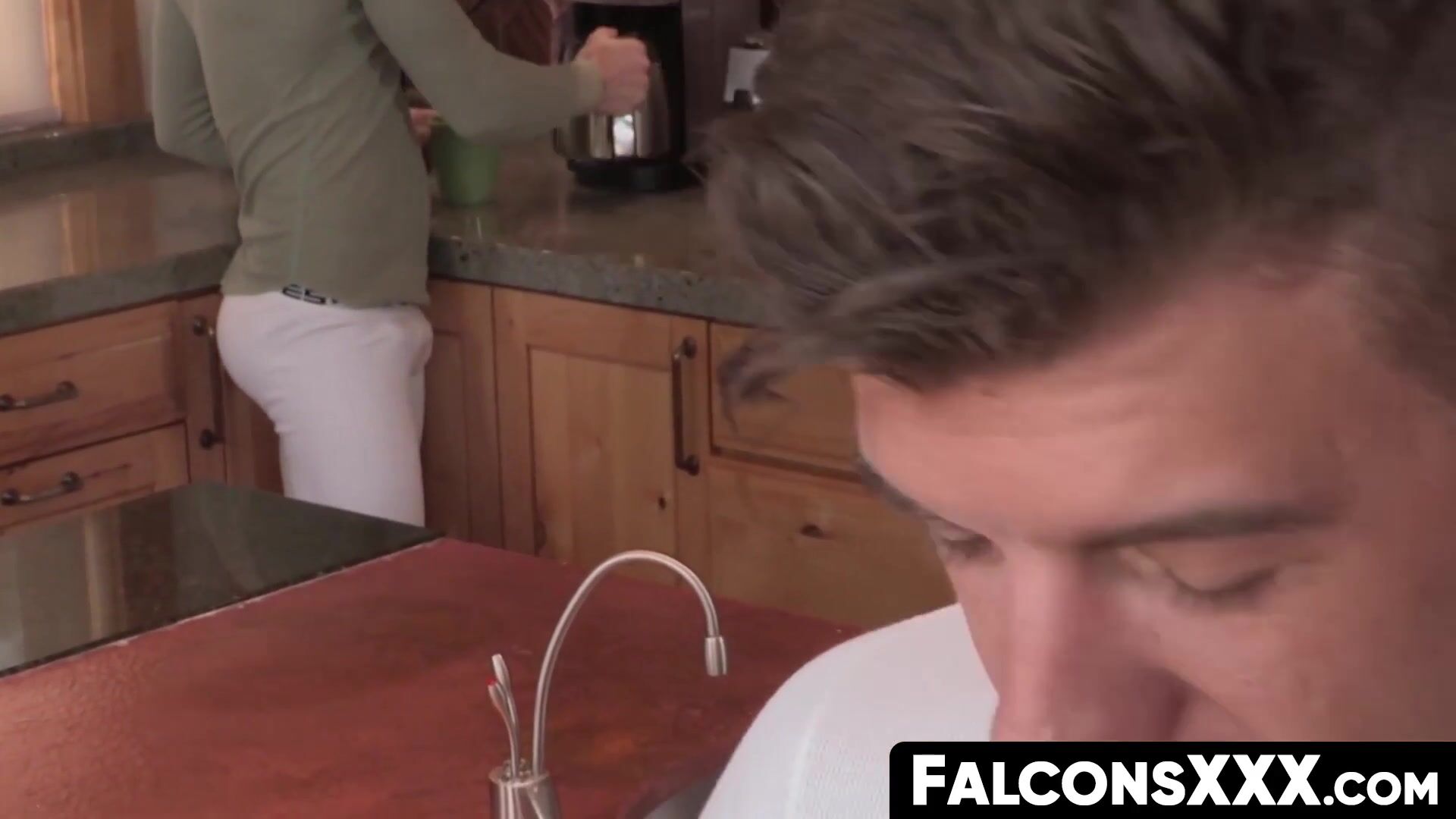 FalconsXXX.com - Inked gay gets doggy style raw fucked by a mature hunk in the kitchen