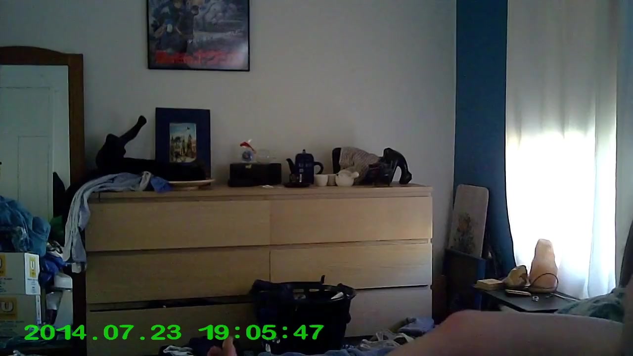 Some precedingly not uploaded footage. A few swift unsuspecting grasps while she gets clothed, then some banging.