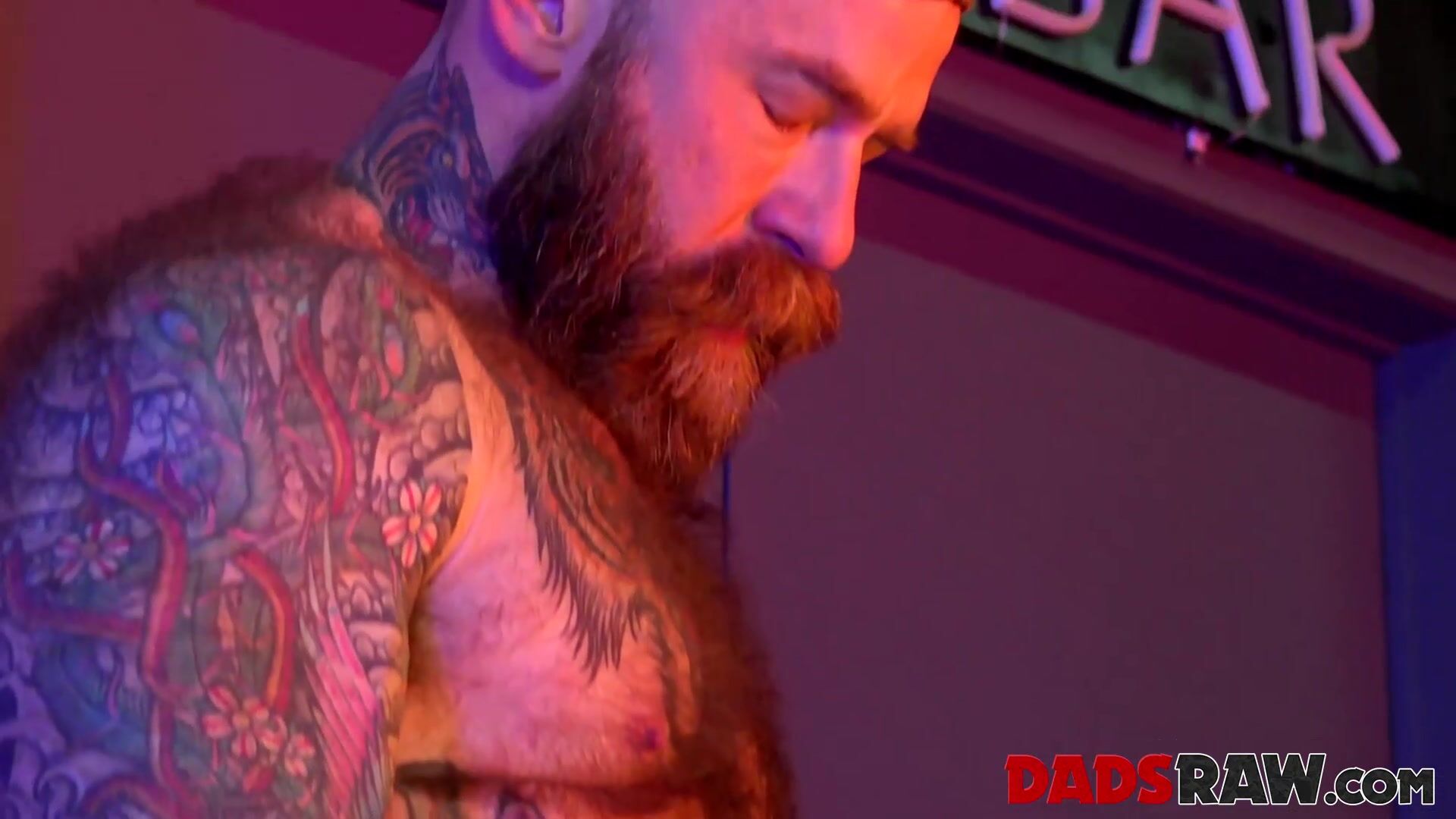Dominant hairy and tattooed daddy Jack Dixon cums on submissive Tryp Bates face after raw breeding Jake Morgans tight asshole!