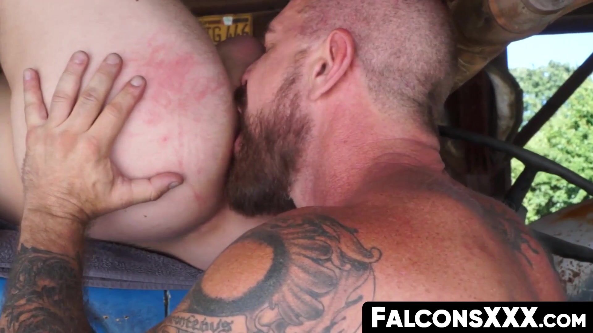 FalconsXXX.com - Muscular and tattooed hunks engage in a raw anal threesome encounter