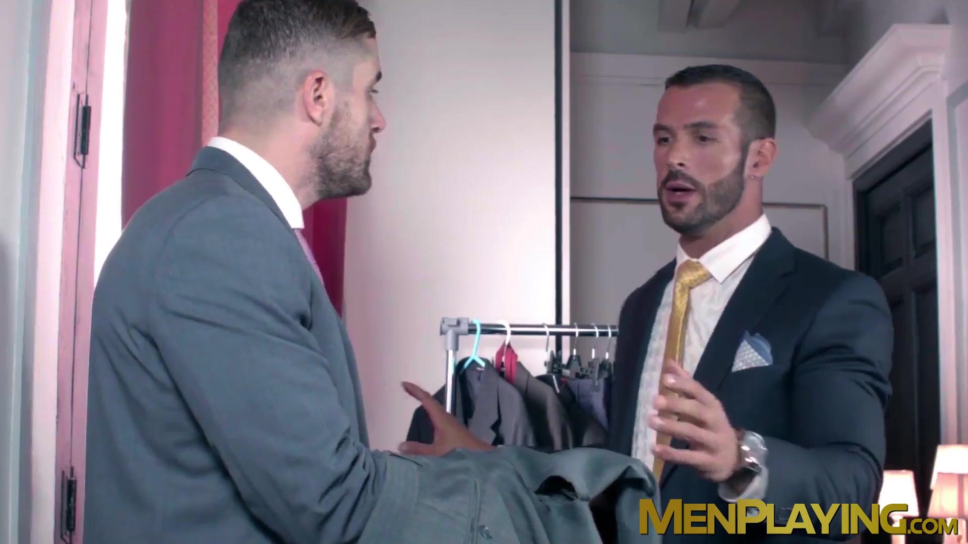 Seductive and classy hunk Isaac Eliad gets on his knees for passionate ball licking and kinky cock sucking he gave his hung stallion Denis Vega.