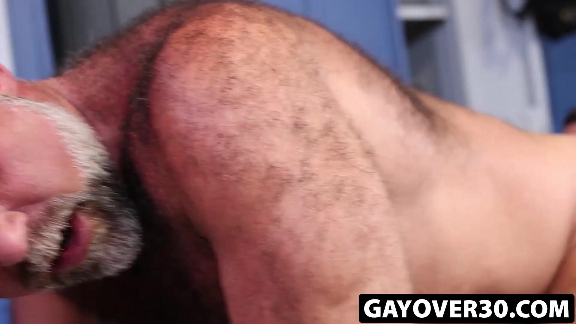 GayOver30.com - Justine Eros and Musclebear Montreal's wood deep-throating