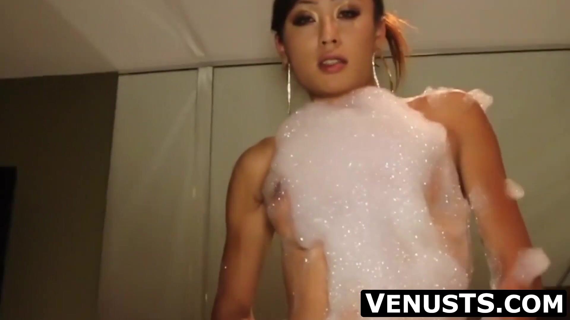 Epic, Chinese brown-haired, Reina is leisurely taking off her bathing suit to showcase us her nude assets