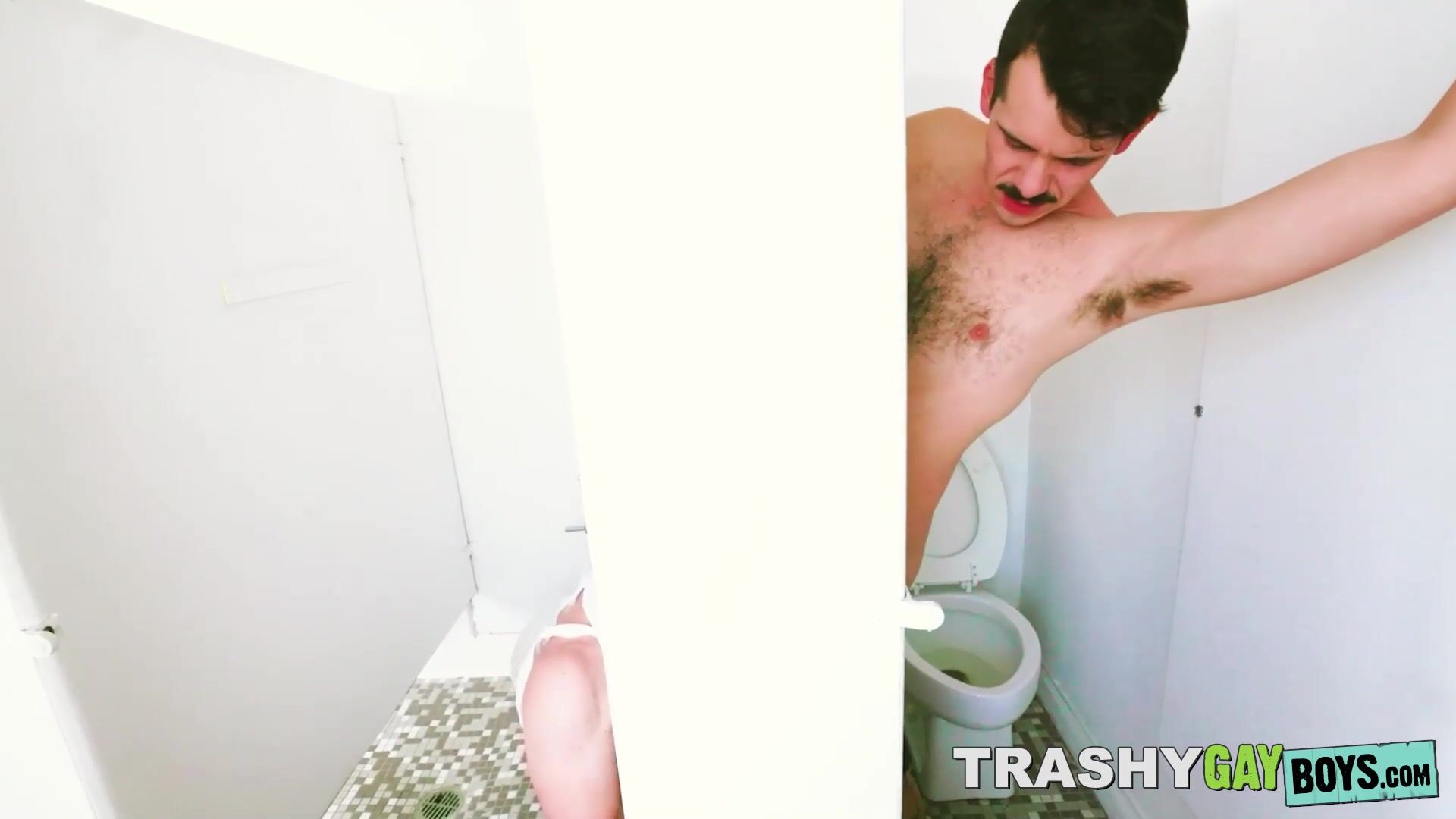 Messy jocks Grant Ducati and Dollar turn a urinal bang-out into a internal cumshot sesh, savouring wet sensation of their meeting.
