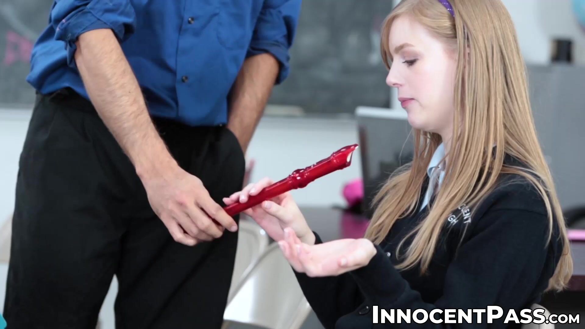 Teen playing her flute while getting fucked
