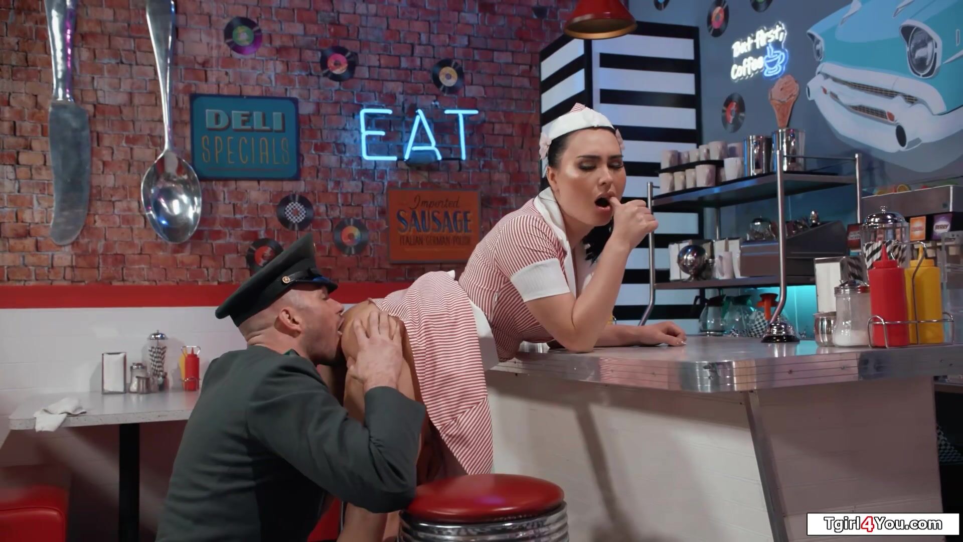 Chinese t-model waitress Ember Fiera cleaning when her hubby emerges.He licks butthole the XXL boobies tgirl in her diner and deepthroats her puny t-model fuck-stick.The oriental trans deep throats his trunk and after a dual hand-job the huge-titted ts is assfucking barebacked