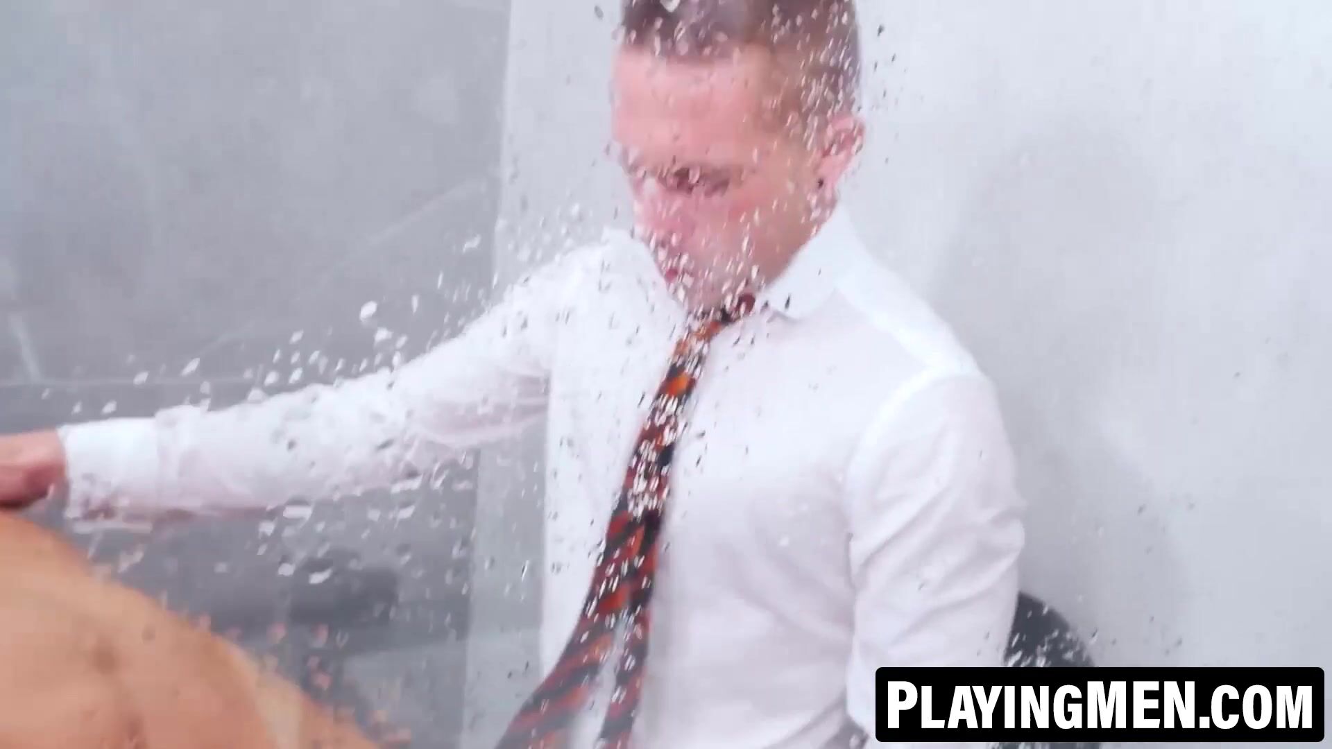 PlayingMen.com - Fellows in suits enjoy a raunchy sesh of super hot intercourse at work with deep pushes