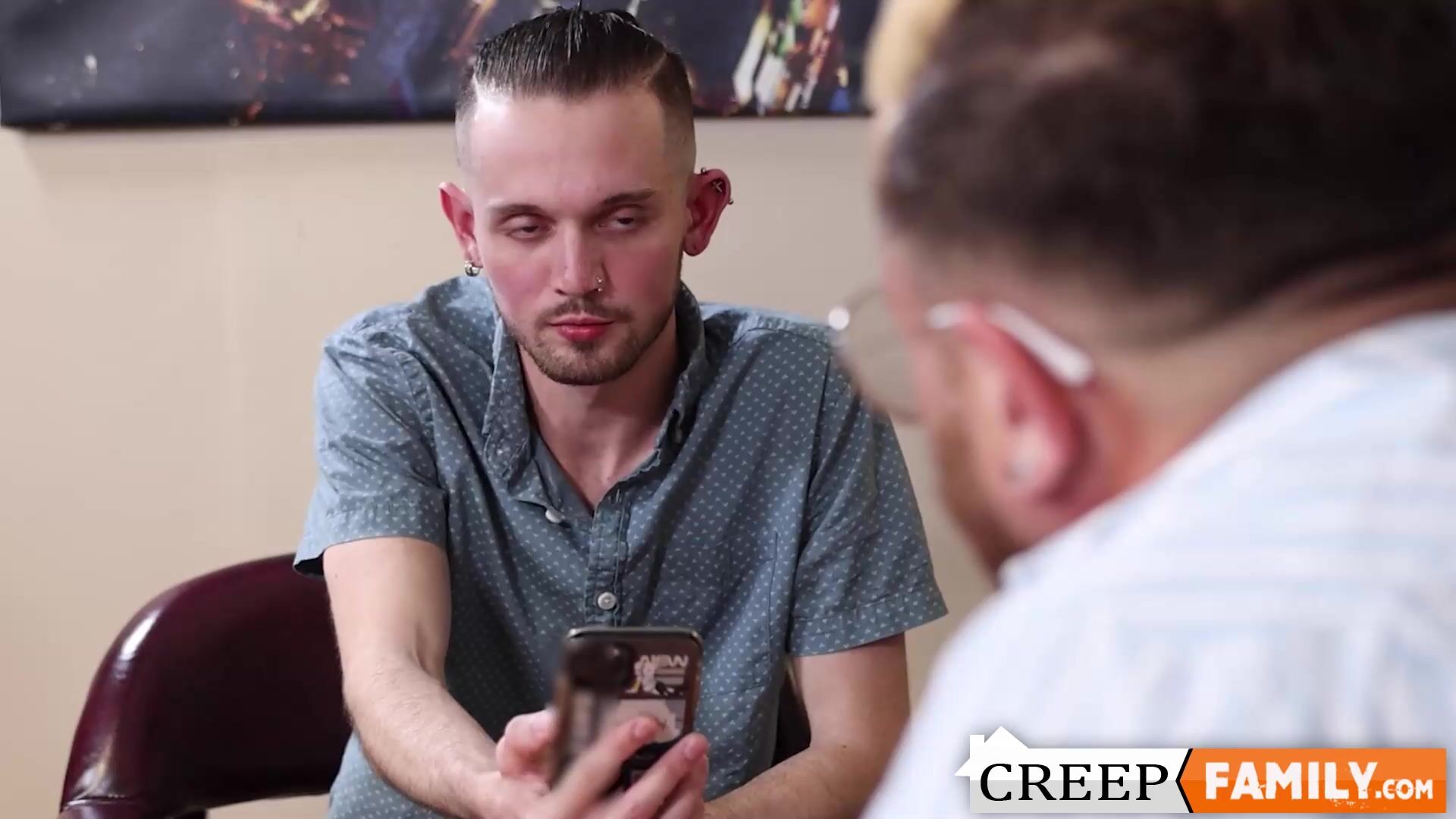 Riley Mitchel confronts his sonny Christian Ace with the bare pictures he found on his smartphone. Riley lets Christian experiment with him!