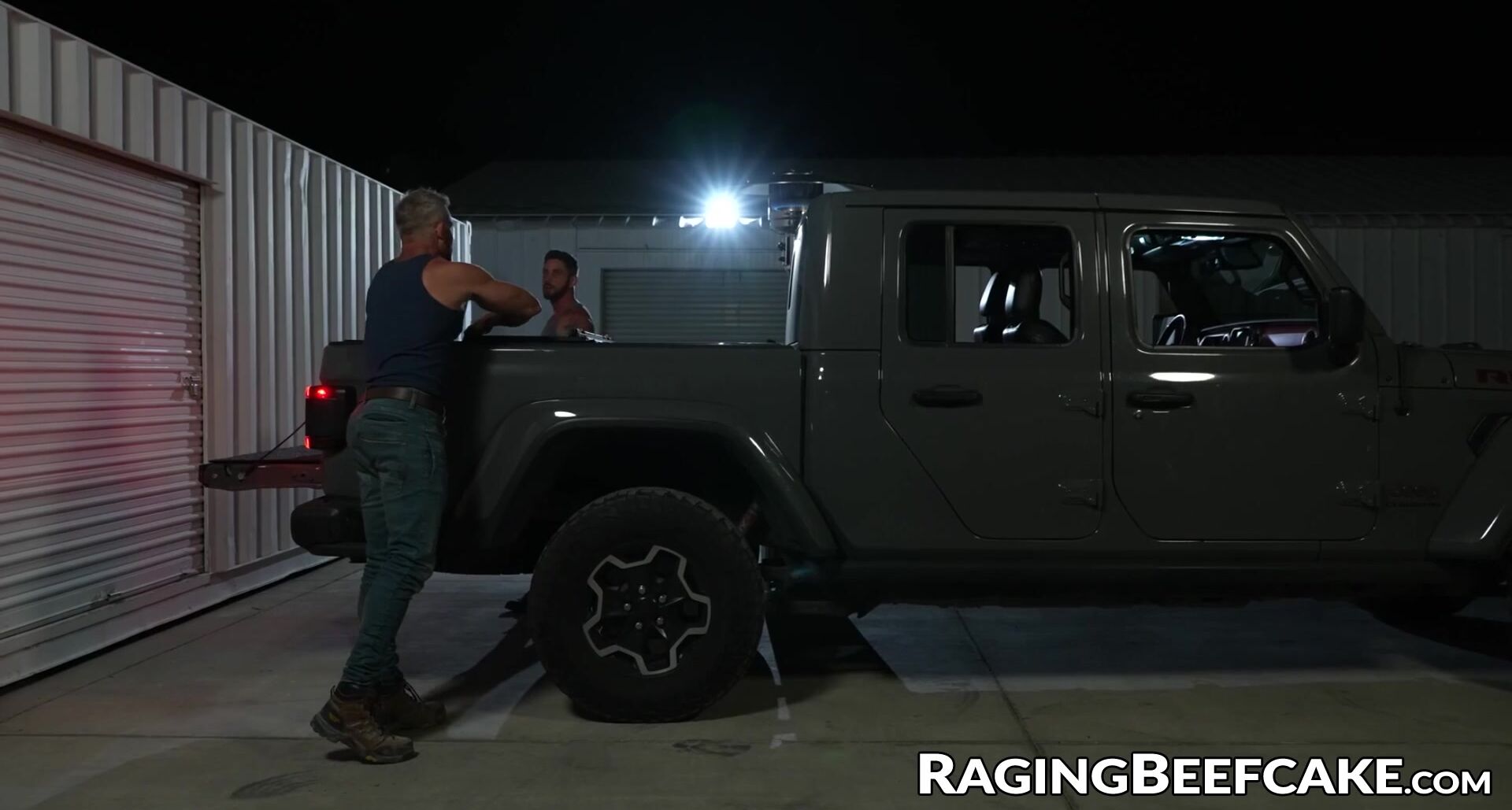 Shortly after pulling into the empty pile behind his supermarket, ultra-kinky mechanic Johnny Ford leaps into the sofa of his camper for a midnight spin-pulverize with muscle father Greg Dixxon!