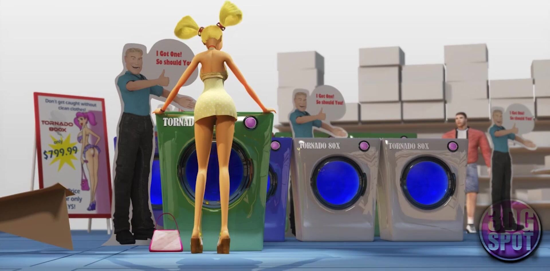 3DGSPOT - 2 Big-chested Lezzies Attempt Dual Faux-cock In A Public Shop! UNCENSORED HOOK-UP!