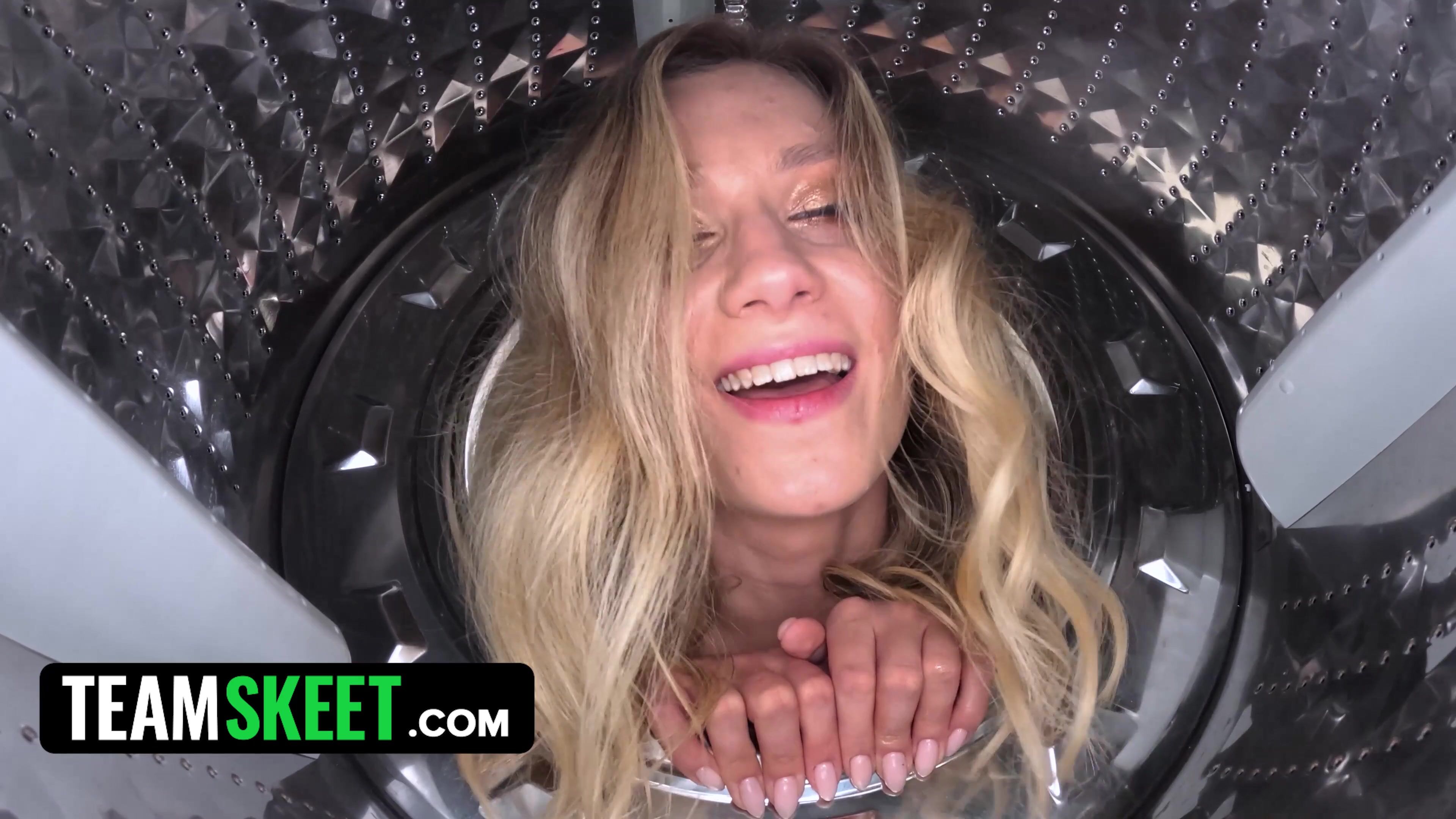 Big-Chested Ash-Blonde Stuck In A Washing Machine