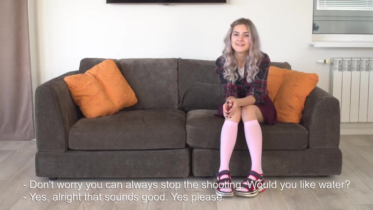 Super-Cute student Tieny Mieny wears pinkish knee-high socks and nervously speaks about why she is here to get her hymen deflowered