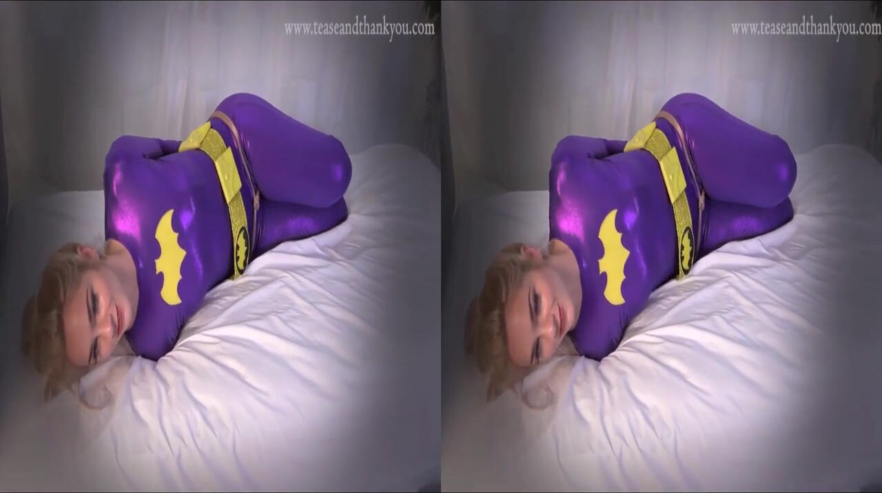 Batgirl is a ample boobed dark haired who oftentimes completes up frogtied and ball-gagged in the dungeon space