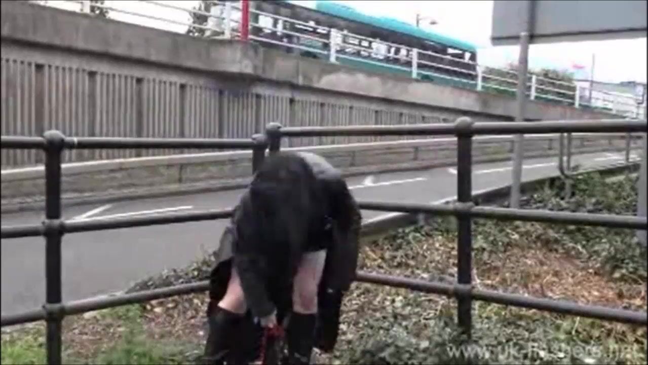 Faye Corbin jizzing on the side of the road